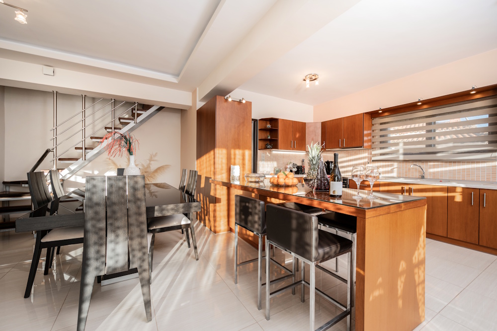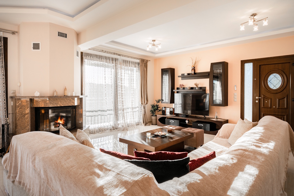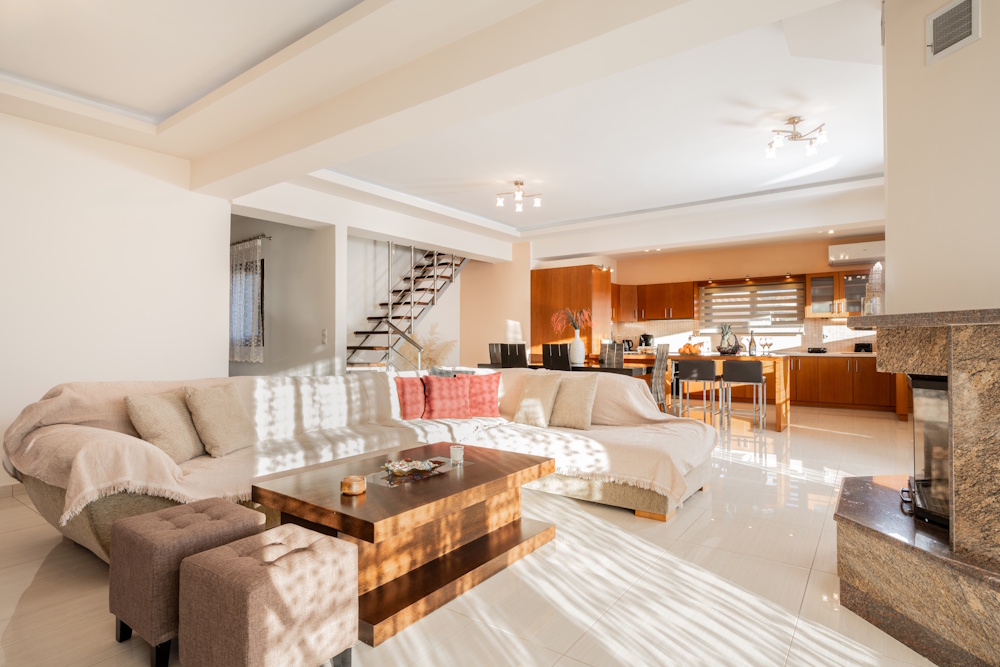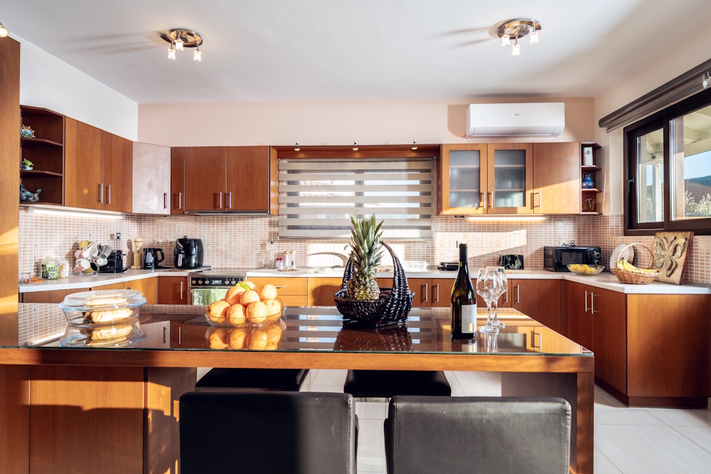 With three bedrooms, two bathrooms, and generous common areas, Kristalia Villa is built to host up to six guests comfortably. Whether you’re traveling with kids, extended family, or friends, you’ll appreciate the roomy layout, fully equipped kitchen, and inviting living room with a fireplace – perfect for sharing meals, stories, and slow mornings together.